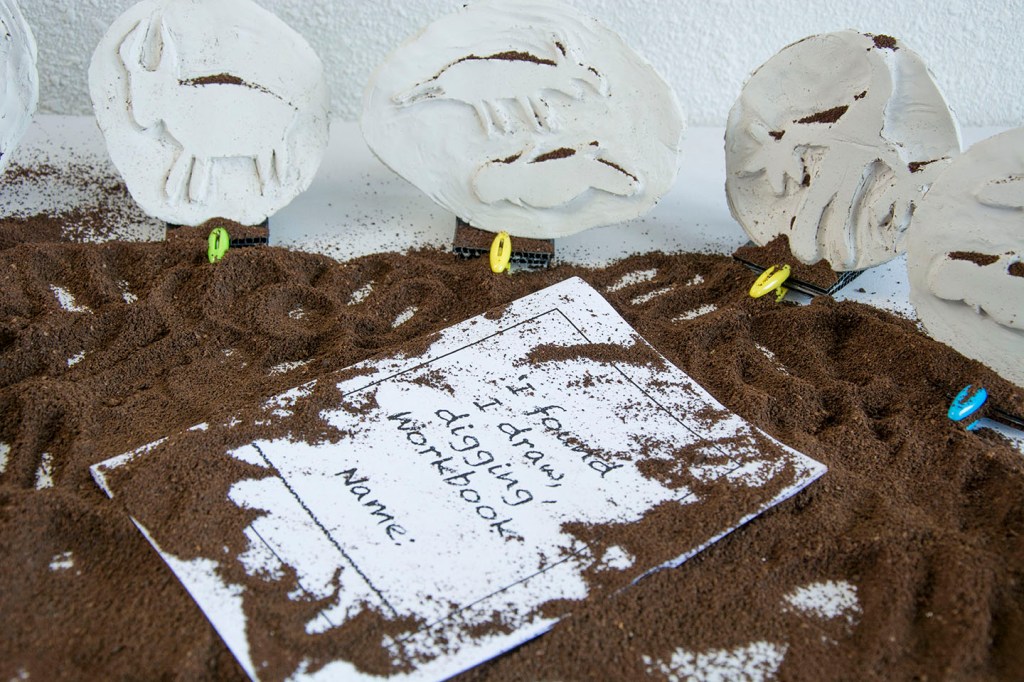 - Follow Video 3 to prepare the ‘soil'(used ground coffee powder) and place the clay medallions inside the try for children to play ‘little archeologists’.