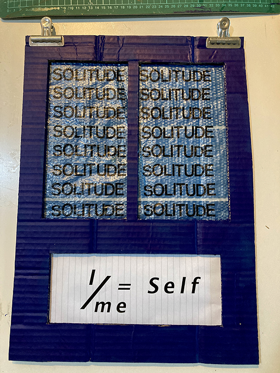 Using various materials such as texts, photographs, reused materials such as cardboards and pallet woods, paints, insulation tapes, tarpaulin and geometrical patterned table cloths. An experience is created which flows from texts to textures. It examines mental experiences and the human condition in a worldly sense. It tries to enlarge, unified or relate experiences through metaphors. I was also thinking about the act of collecting/recollecting, accumulations/distributions, repetitions/monotone, organising, simplicities, framing. I get excited by many things, such as texts, images, rhythms.
