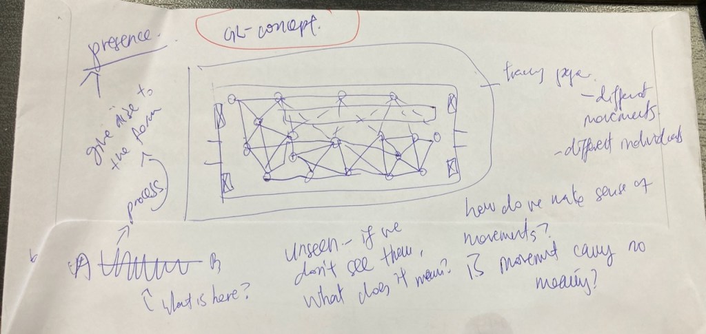 A few of our project mates happened to have working experiences in family businesses, including myself. I tend to think of a space, where lines are drawn with movements through generations in that same space. Words spoken, rhythms of sounds of labour, the passing of time, foot steps, the possible faces that can be remembered, negotiations, exchanges of goods and services, etc and labor of generations of workers.
