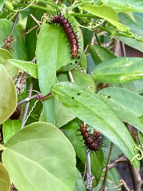 There were Tawny coaster caterpillars in the garden’s begonvilla plant. I counted 8 of them. These caterpillars have thorns. Its a common caterpillar in Singapore. The butterflies are beautiful! I made a 4 hour time lapse video of their movements on the plants stalks and leaves. It was mid afternoon, so the sunlight of the day shifts in between with passing clouds obscuring the lights in rapid successions.