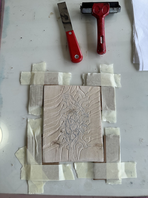 Woodcut prints created by the participants