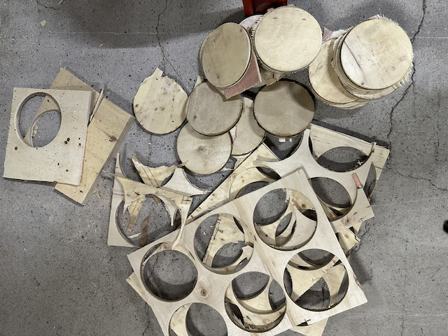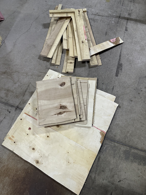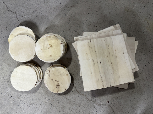 The context to this workshop was; whether images could be carved into the reused wood and still attain a good quality print? I had this big piece of wood(used for shipping a big machine from overseas) at my factory space. I cut(saw) the big piece down to smaller irregular rectangular pieces, round pieces and did some surface treatments by sanding down the rougher surfaces and remove the splinters in order for the resued wood to be safe for handling.